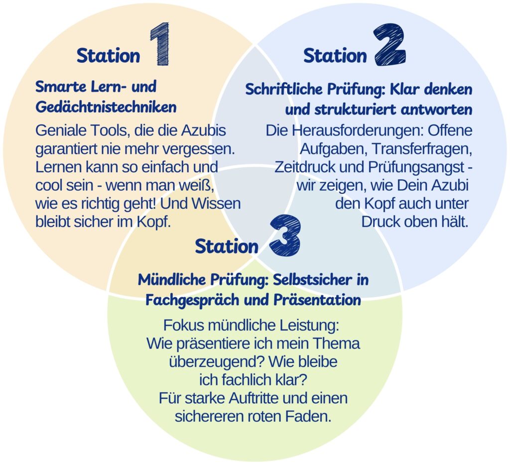 Dann ist genau jetzt der richtige Zeitpunkt, sie gezielt zu stärken. Dieses kompakte Training bringt Deine Azubis auf den Punkt – mit erprobten Gedächtnistechniken, einem starken Mindset und der richtigen Strategie für schriftliche und mündliche Prüfungen.